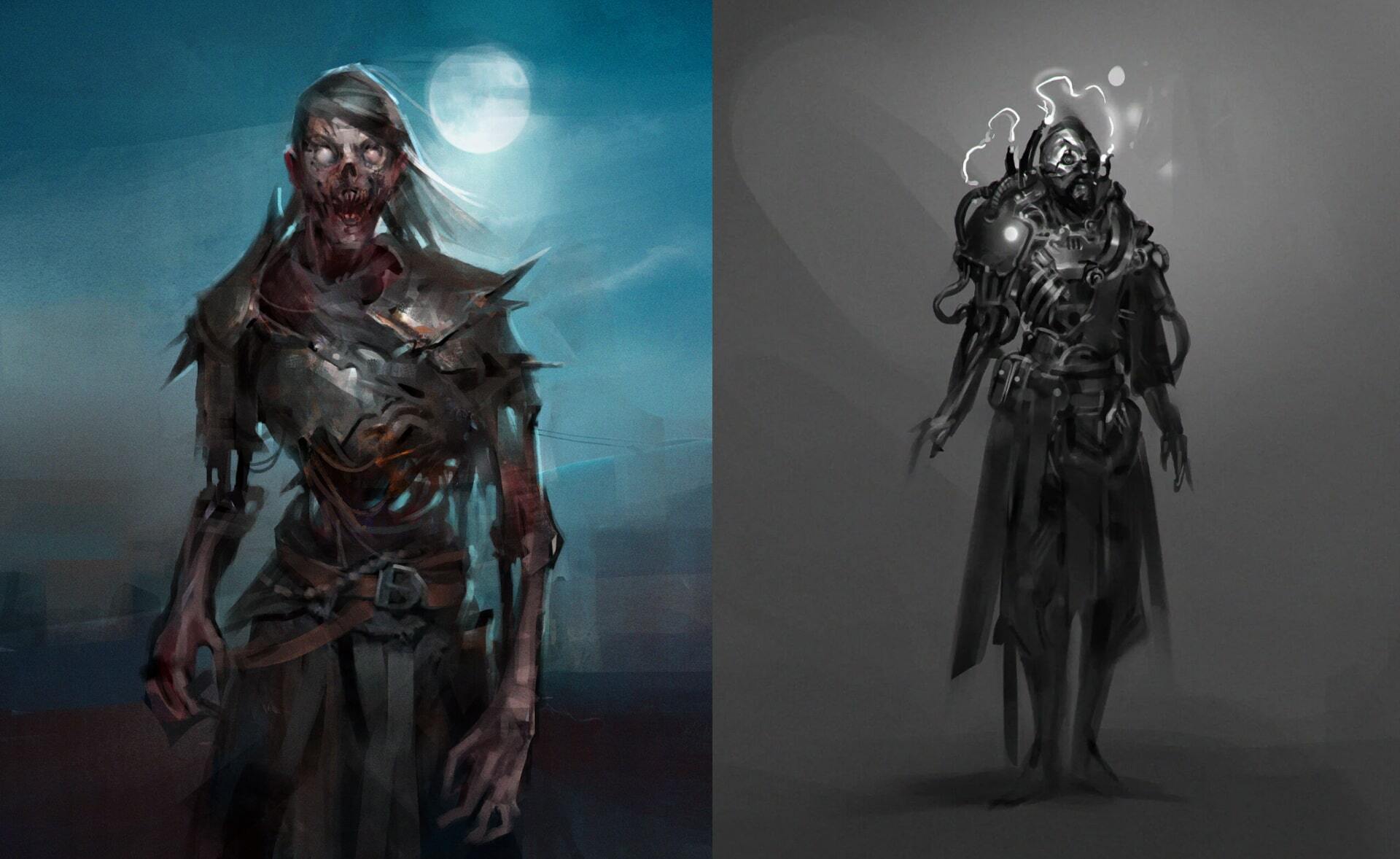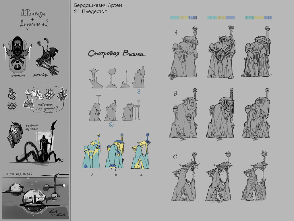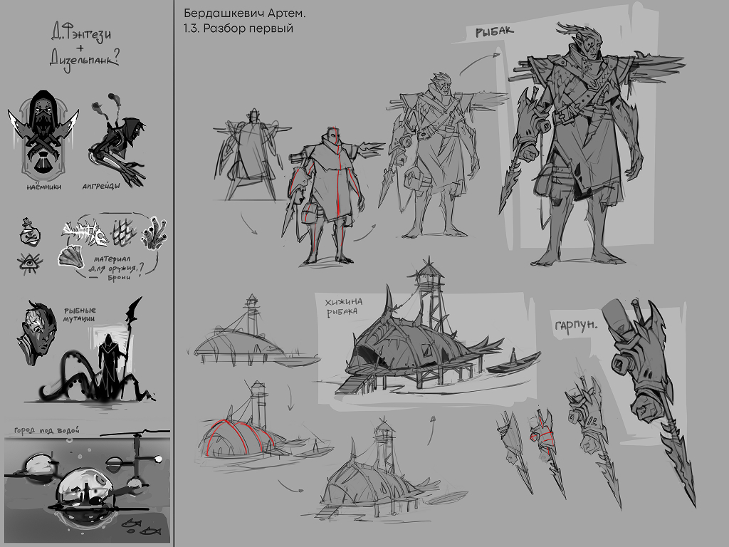 —Да. Вот что касается концепта, я вообще даже не подозревал, как это работает, какие пайплайны существуют. Я вообще пришел когда устраиваться, я как бы планировал иллюстрации рисовать. И мне сразу сказали, мол, у нас такого не существует, у нас только концепты, а я даже как бы и не знал, что это такое. И тогда меня всему обучили, можно сказать, с нуля. Тогда, конечно, порог входа не такой был, как сейчас. Было проще гораздо. То есть буквально за руку тянули, всё показывали… Ну да, в начале было сложно. Свыкся.