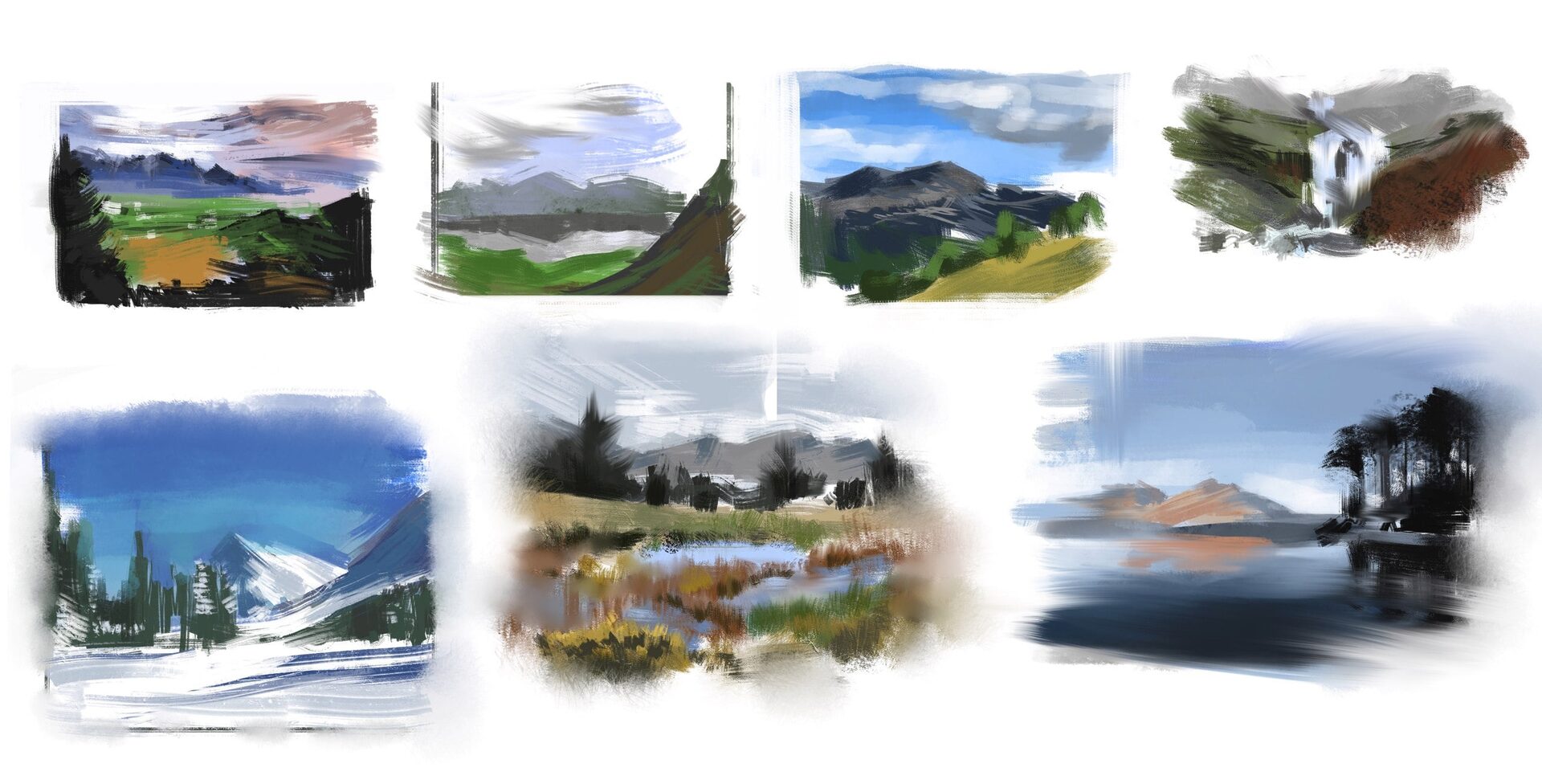 —Я самый мощный взял. Я вообще сначала хотел взять курс «Профессия Концепт-художник», но мне сказали, что так нельзя, потому что он слишком долго идет. И это не курс, а что-то другое. Курсы — это то, что до шести месяцев, так мне объяснили. Я взял курс «Концепт-арт». Я, правда, не сильно далеко ушёл сейчас. Я начал его перед Новым годом, получается, там первый блок выполнил, начался Новый год и как-то… Пока ещё не вошёл вот в эту вот скорость, в этот темп. Вообще поначалу очень интересно, хоть я и немного прошёл. Там такие темы. есть на чем подумать на самом деле. Меня сначала немного смутило, что там подход такой через лайн, то, что я не привык делать.