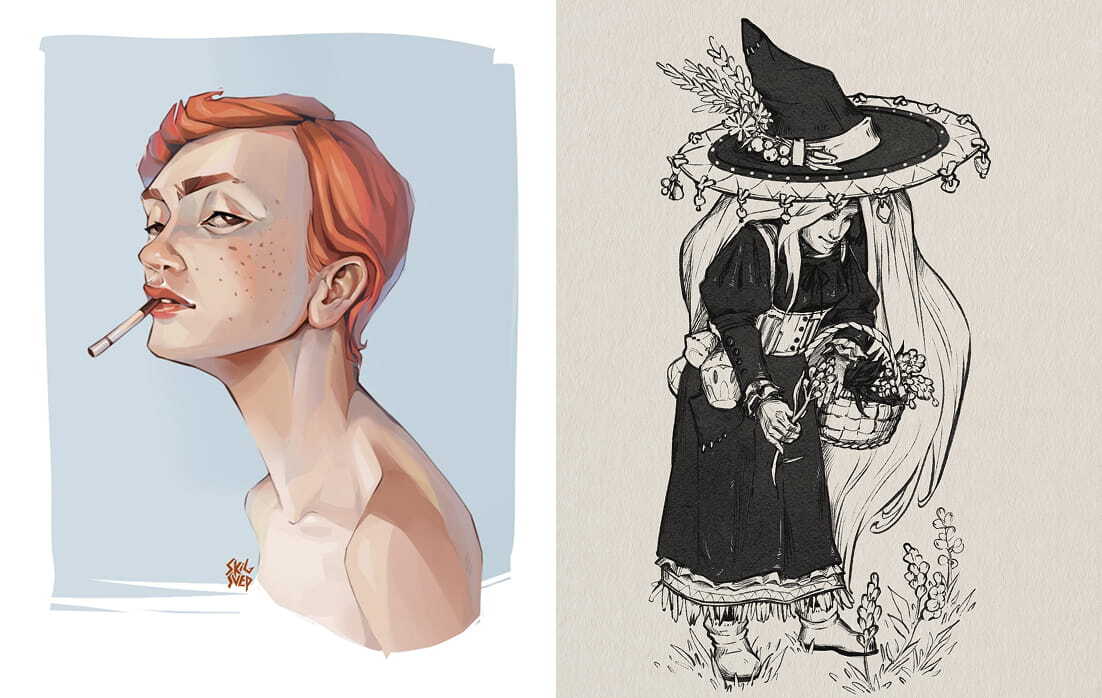 — Портфолио ждало, пока я им займусь. В год, когда я закончила курсы, у меня пошло именно переосмысление того, как в целом можно работать, как к этому подходить. Я очень выдрессировала лайн, до сих пор я его безумно люблю. Потом еще в паре каких-то концепт-конов что-то рисовала, я безумно кайфовала от того, что я рисую, от того, что я делаю. Потом, уже в 2020 году, я просто уволилась, уехала из Петербурга на полгода, к маме в деревушку, в Новгородской области. И, собственно, эти полгода вот я этим занималась, работала над портфолио… И я нашла работу. Вакансия была опубликована на нетипичном для меня ресурсе — Illustrators.ru. Ребята там сообщали, что они какую-то игру собираются делать и ищут концепт-художников. Мы с ними списались, они мне дали тестовое, я с удовольствием его сделала и меня взяли в команду.