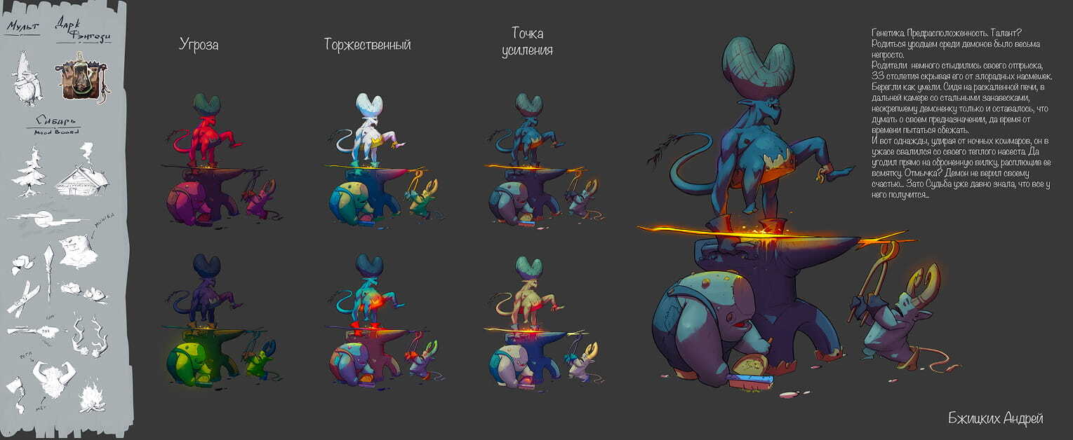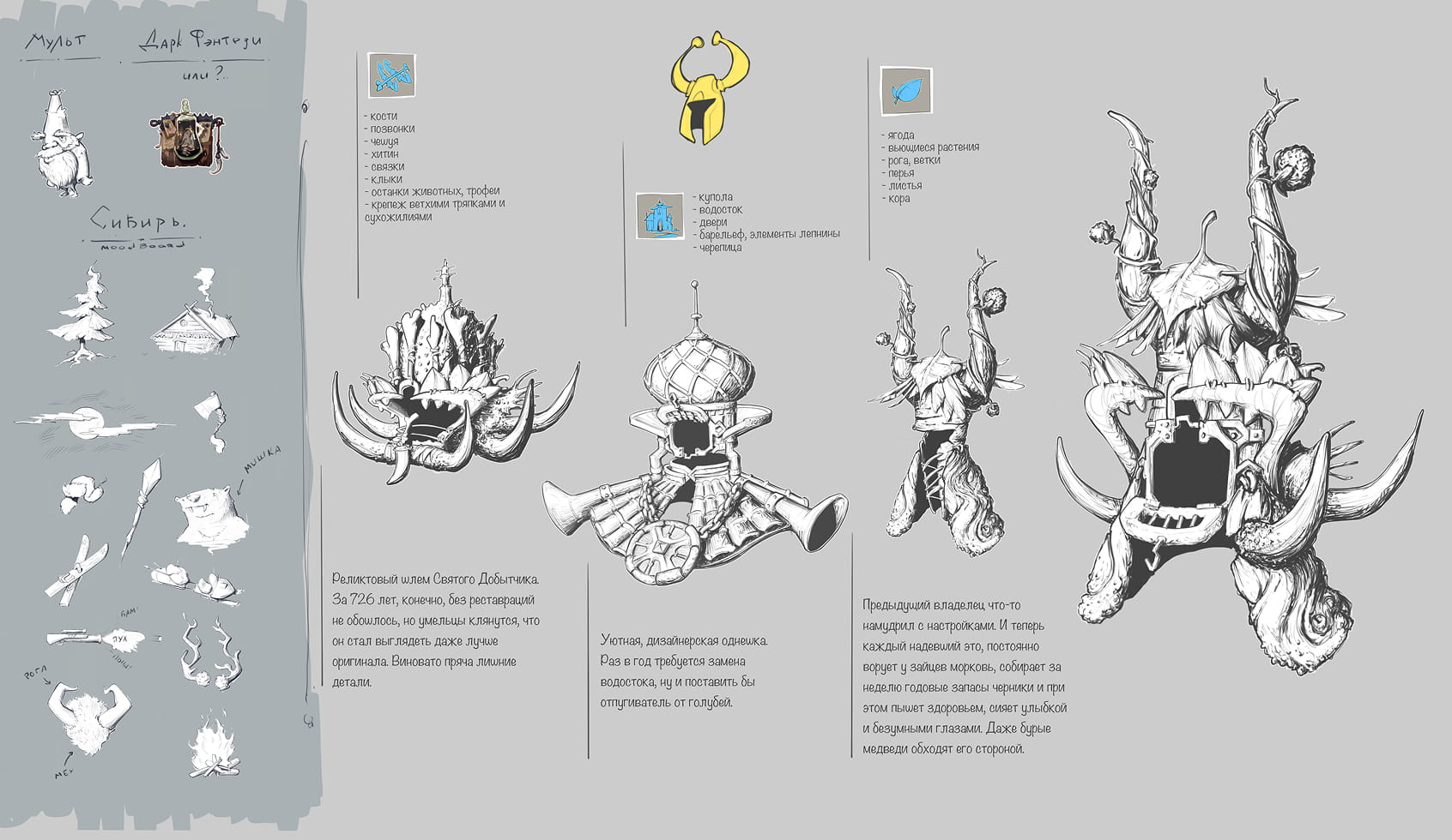 — Это был концепт добытчика-охотника. У меня был Емельян-рыбник. Он спускался в какой-то разлом, искал артефакты и нашел рыбку, которая производит какой-то газ, который дает долголетие, но при этом сводит с ума.