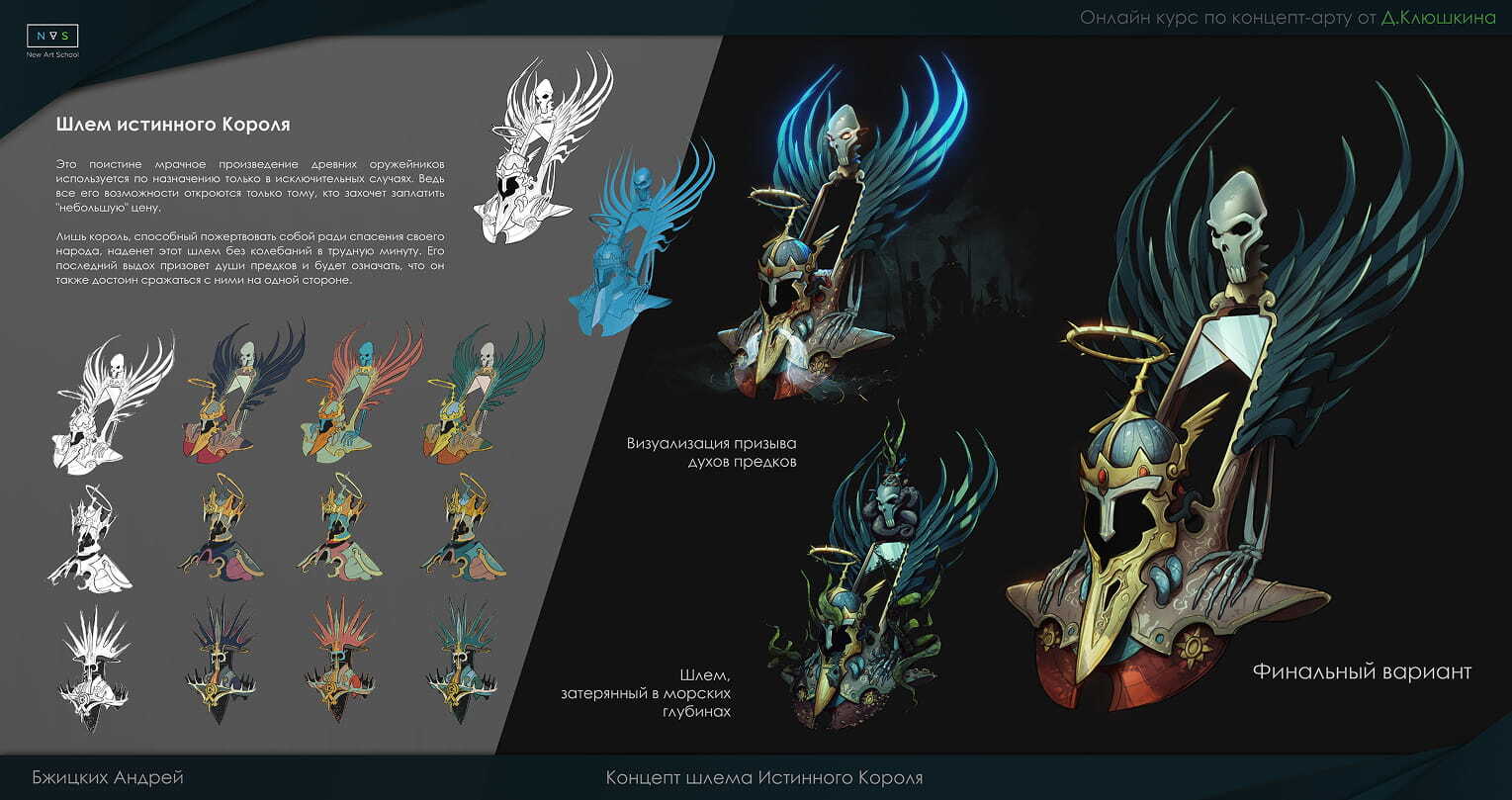 — У нас в NewArtSchool запустилось два новых масштабных курса по Профессиям — «Профессия 2D Художник» и «Профессия Концепт-художник». Они большие, идут 12 месяцев и больше… Туда включено сразу несколько наших курсов. Человек проходит их и параллельно делает свое портфолио в едином сеттинге, который выбирает сам. Это может быть фэнтези, киберпанк, что угодно! В конце обучение он защищает свой проект и, если все успешно, получает возможность гарантированной стажировки в международной студии 2 месяца! У него будет возможность проявить свои полученные знания и навыки в боевых условиях и, если он впишется в команду, ему могут сделать предложение о работе там! А если нет, у него уже будет очень хорошая наработанная база и уже зайти в профессию гораздо легче будет!