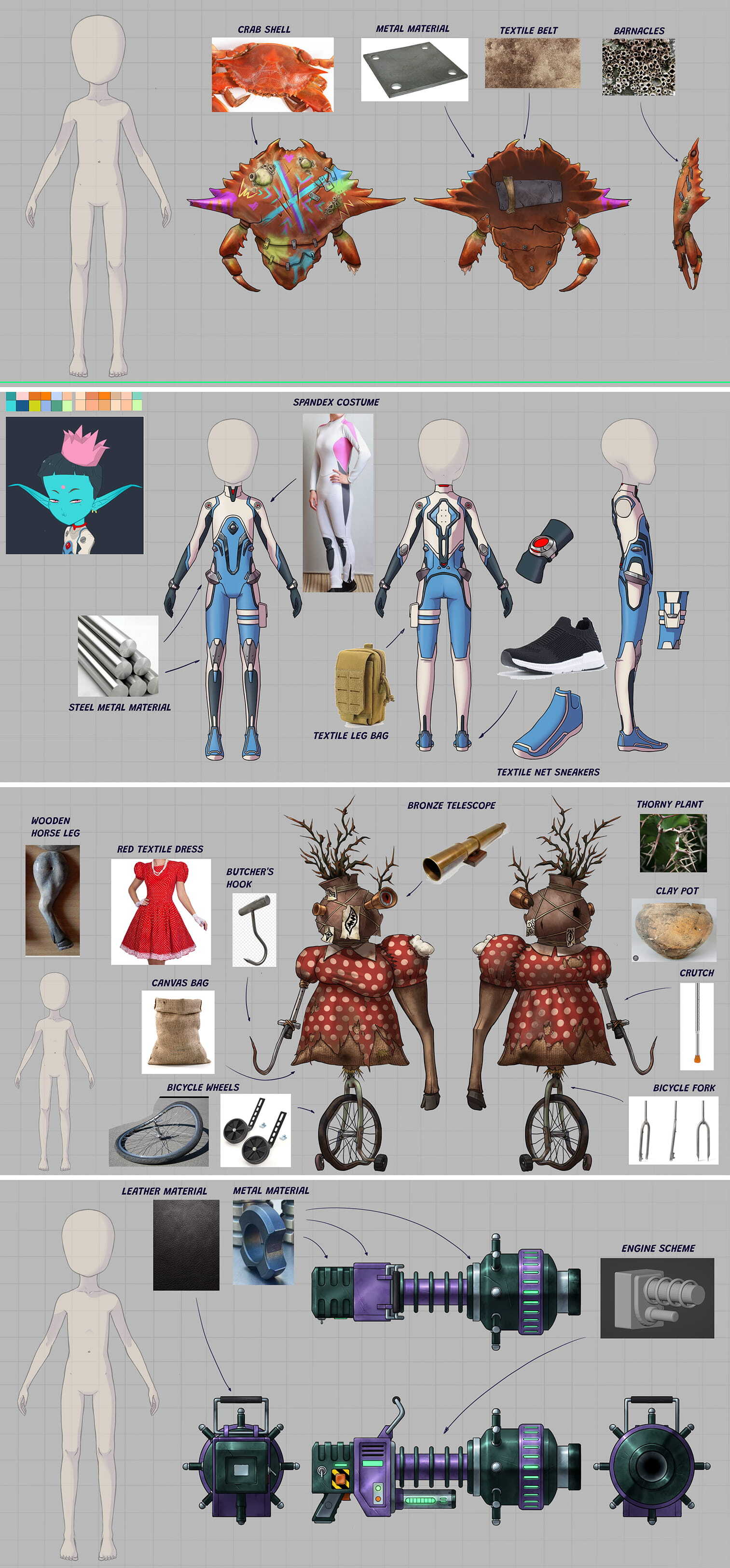 — Да, но мы не вставляем изображения нейронные в концепты, нет. То есть, это больше, скорее, как вдохновлялочка или как инструмент, над которым потом просто немножечко надо поработать, чтобы добить до нужной точки. Но чаще ручками! Я как-то больше ручками работаю. Я 3D использую в работе зачастую. То есть, вот 3D прям сильно помогает, потому что концепты — по крайней мере, то, что я рисую — это развертки. То есть, с разных ракурсов показать пропсы, с разных ракурсов показать скины персонажей. И зачастую бывают такие моменты, когда 3D-шнику будет непонятно, что там и как. И надо этот момент отдельно вынести. И вместо того, чтобы я по перспективе все это крутил два часа, я, собственно, за 10 минут сделал просто болванку в 3D и обрисовал ее.