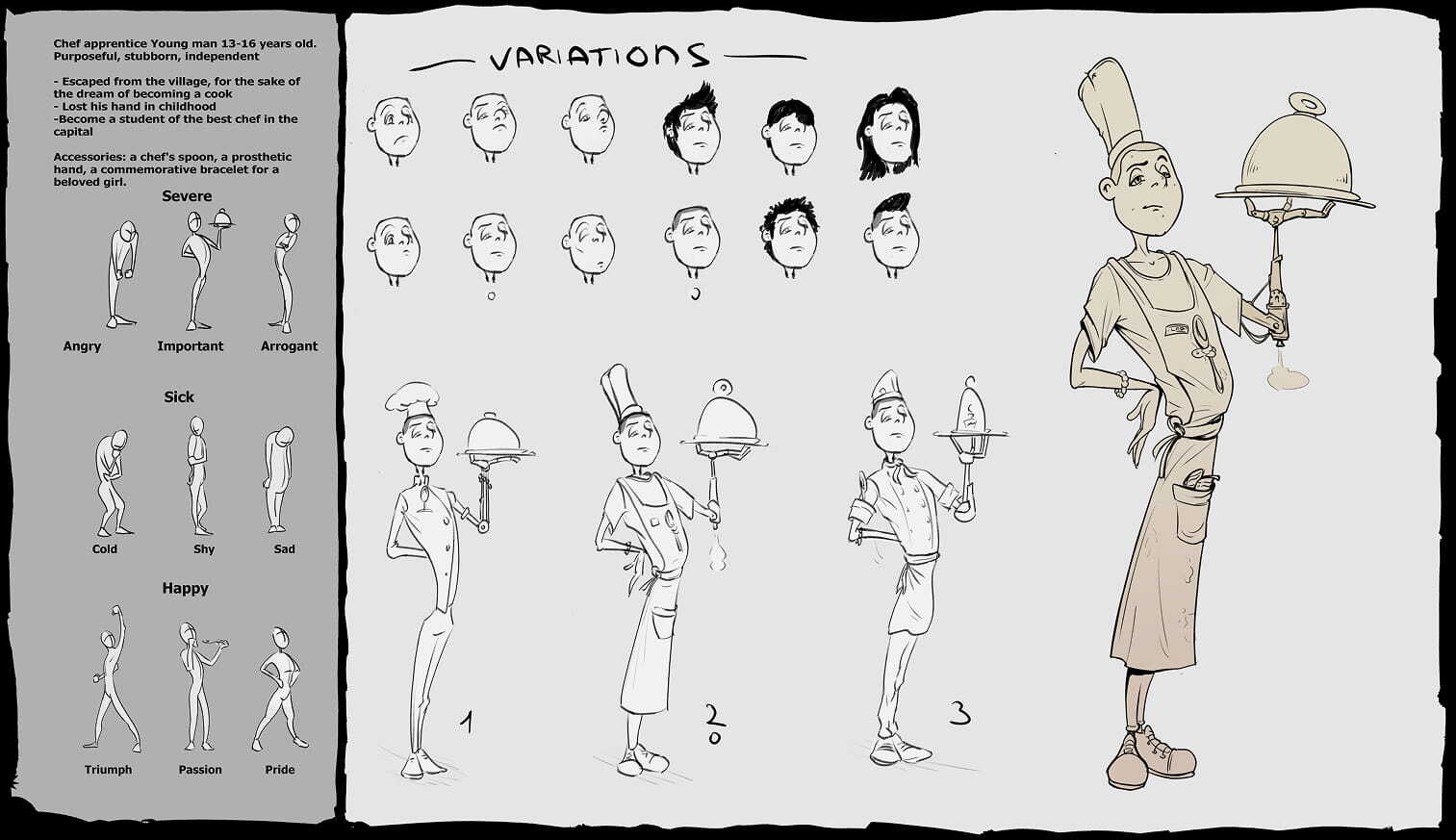 — У меня была одна работа, где я рисовал жест, но там надо было через выражение эмоций показать характер героя. Это была очень простая работа, на самом деле, с точки зрения рисунка. Там просто был повар у меня с подносом и с крышкой. Но это единственная работа, на которую ментор тогда сказал: «Я не знаю, что мне тебе тут сказать, у тебя тут всё идеально».